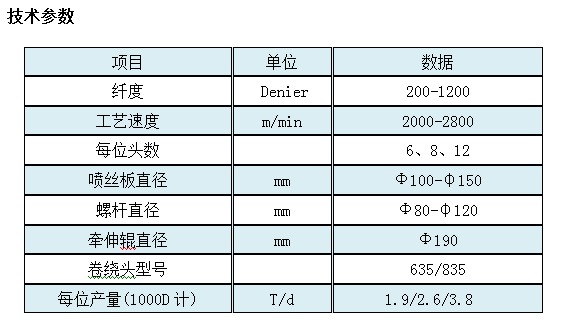 設(shè)備用于紡丙綸普強(qiáng)FDY絲,該絲主要用于做箱包、織帶、家具布、裝飾窗簾、繩索、包裝用布、縫紉線、地毯底布、網(wǎng)等。