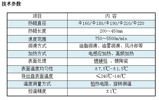 熱輥主要特點 1. 滌綸、錦綸絲熱輥利用電感應加熱,熱管均溫或分段控溫技術,使熱輥工作區(qū)表面溫度均勻。能滿足不同的工業(yè)絲、民用絲FDY紡絲工藝的要求 2. 丙綸絲熱輥利用電感應加熱或高頻加熱技術,使熱輥工作區(qū)表面溫度升溫迅速。該輥結構簡單,成本較低,運行平穩(wěn)可靠,是丙綸FDY絲紡絲經(jīng)濟合理的選擇。 3. 高頻熱加熱輥利用電感應加熱,通過將工頻電壓轉換成更高頻率的加熱電壓并采用分段控溫技術,使工作區(qū)表面溫度均勻。該設備系統(tǒng)完善,結構簡單,在高溫下運行平穩(wěn)可靠,能滿足不同纖維FDY紡絲工藝的要求。